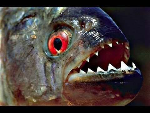 Строение нижней челюсти и зубов позволяет пиранье вырывать из добычи крупные куски мяса. Зубы у пираний имеют вид треугольника высотой 4—5 мм и расположены так, что зубы верхней челюсти ровно входят в пазы между зубами нижней челюсти. Челюсти действуют двумя способами: при смыкании челюстей мясо отрезается как бритвой острыми зубами, при смещении сомкнутых челюстей в горизонтальном направлении