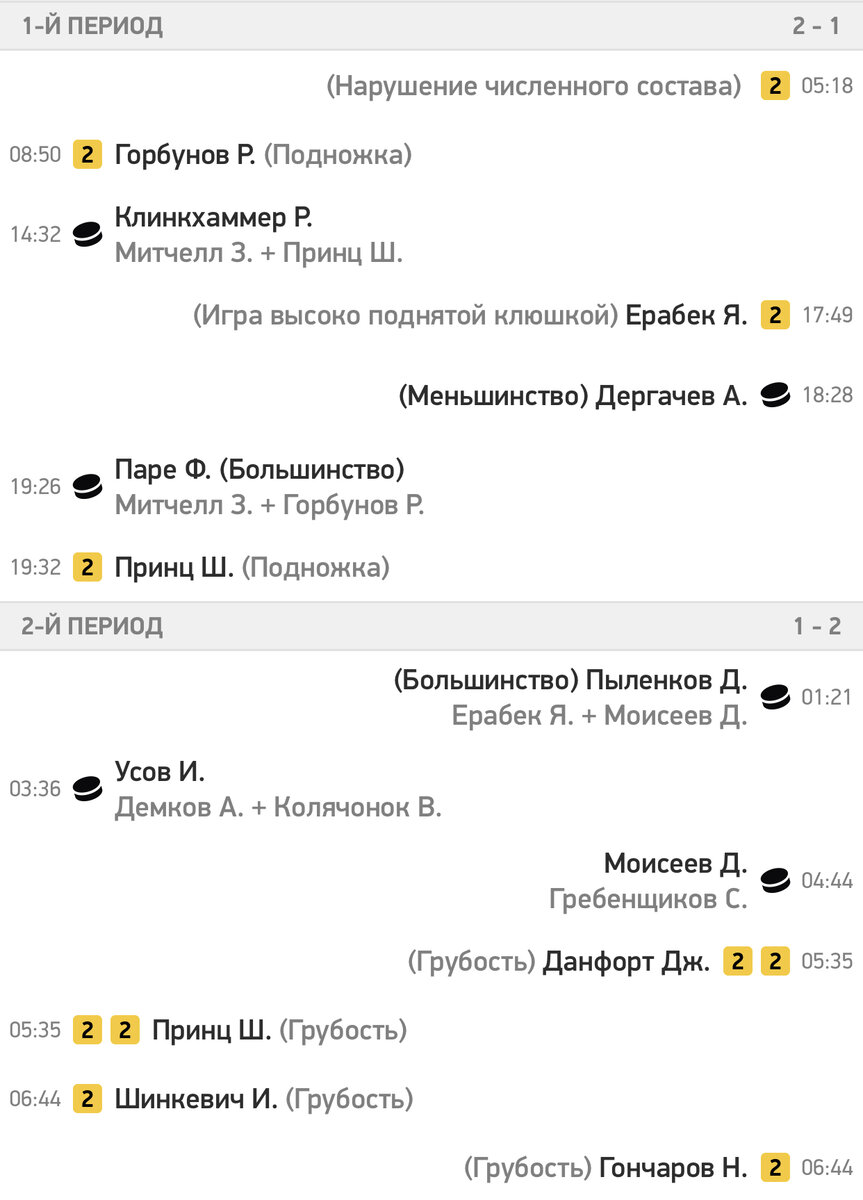 В составе белорусской команды заброшенными шайбами отметились Роб Клинкхаммер (15-я минута), Франсис Паре (20), Илья Усов (24), Роман Горбунов (46) и Шейн Принс (59), у подмосковной команды отличились