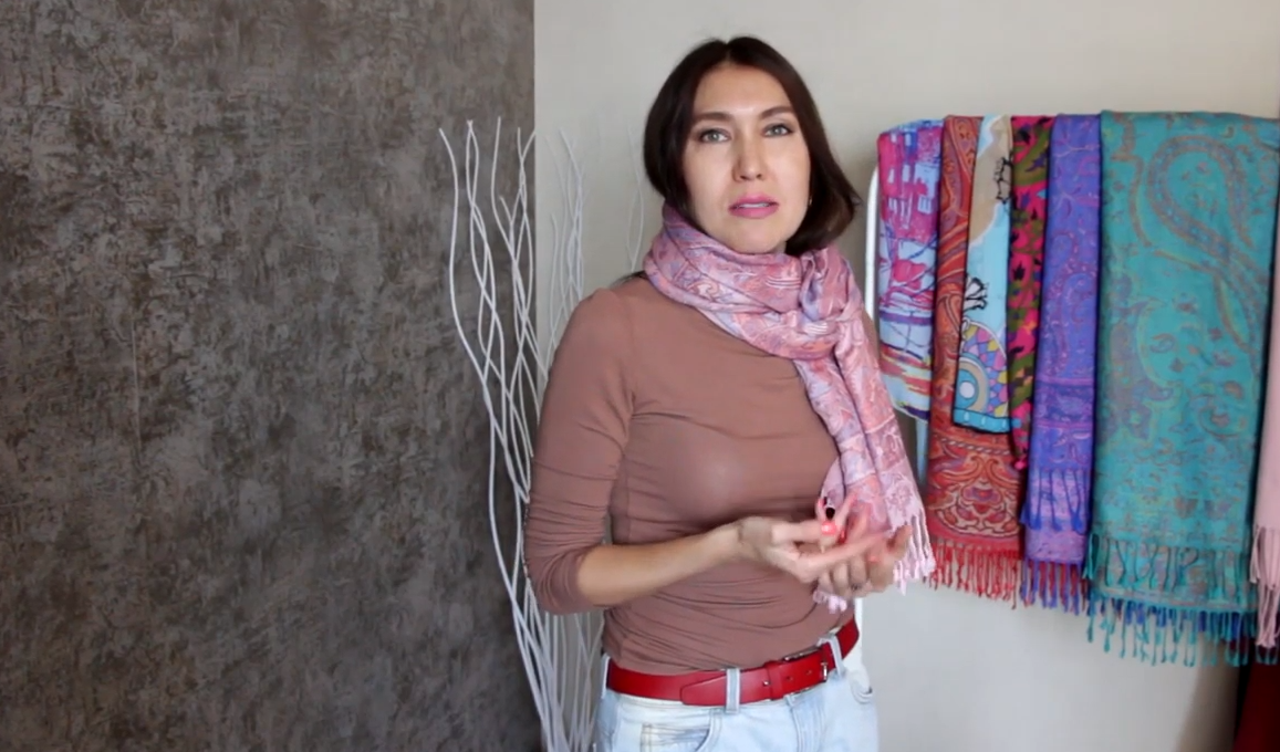 - Заведите уголки платка в разноимённые стороны, если платок длинный можете дважды обернуть концы вокруг шеи;