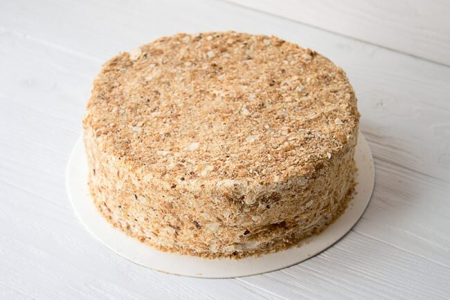 Это и есть рецепт Наполеона, который наши бабушки готовили ещё в советское время. Десерт получается вкусный и терпкий, можно подать и просто к чаю, и на праздник.