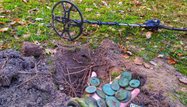 О мой бог! Один из наших металлоискатель поймал сильный сигнал. Наши глаза засверкали. Внутри была уверенность, что мы нашли то, что нам надо. Принялись копать. Через полметра наша лопата уткнулась во что-то твердое. Начали аккуратно раскапывать и появилось очертание гнилого и огромного сундука. Вот она царское состояние. Мы были очень сильно рады. То, что мы нашли внутри очень сильно удивило нас. Я не смогу описать это словами. Лучше все показать вам с места событий! Как хорошо, что мы вели съемку.