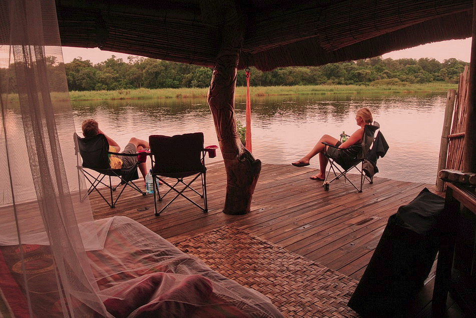 Один неверный шаг- и я полетела бы с четырёхметровой высоты прямо в виднеющиеся внизу камыши. А в камышах… А в камышах мирно паслась парочка гиппопотамов, которая заслышав над собой движение, грозно и раскатисто рыкнула, хрюкнула и недовольно плюхнулась в воду.