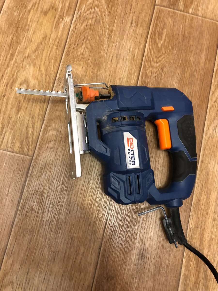 Выбор был сделан в пользу одного из самых дешевых лобзиков фирмы Dexter из Леруа Мерлен мощностью 500 Вт и с функцией регулировки оборотов.