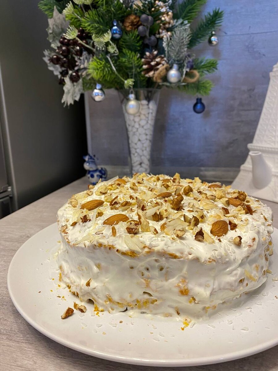 Посыпаем наш тортик орешками (миндаль и грецкий)