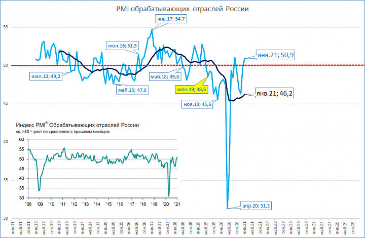Индекс менеджеров по закупкам обрабатывающих отраслей (PMI manufacturing) в январе выше отметки 50 пунктов впервые с августа 2020 года.