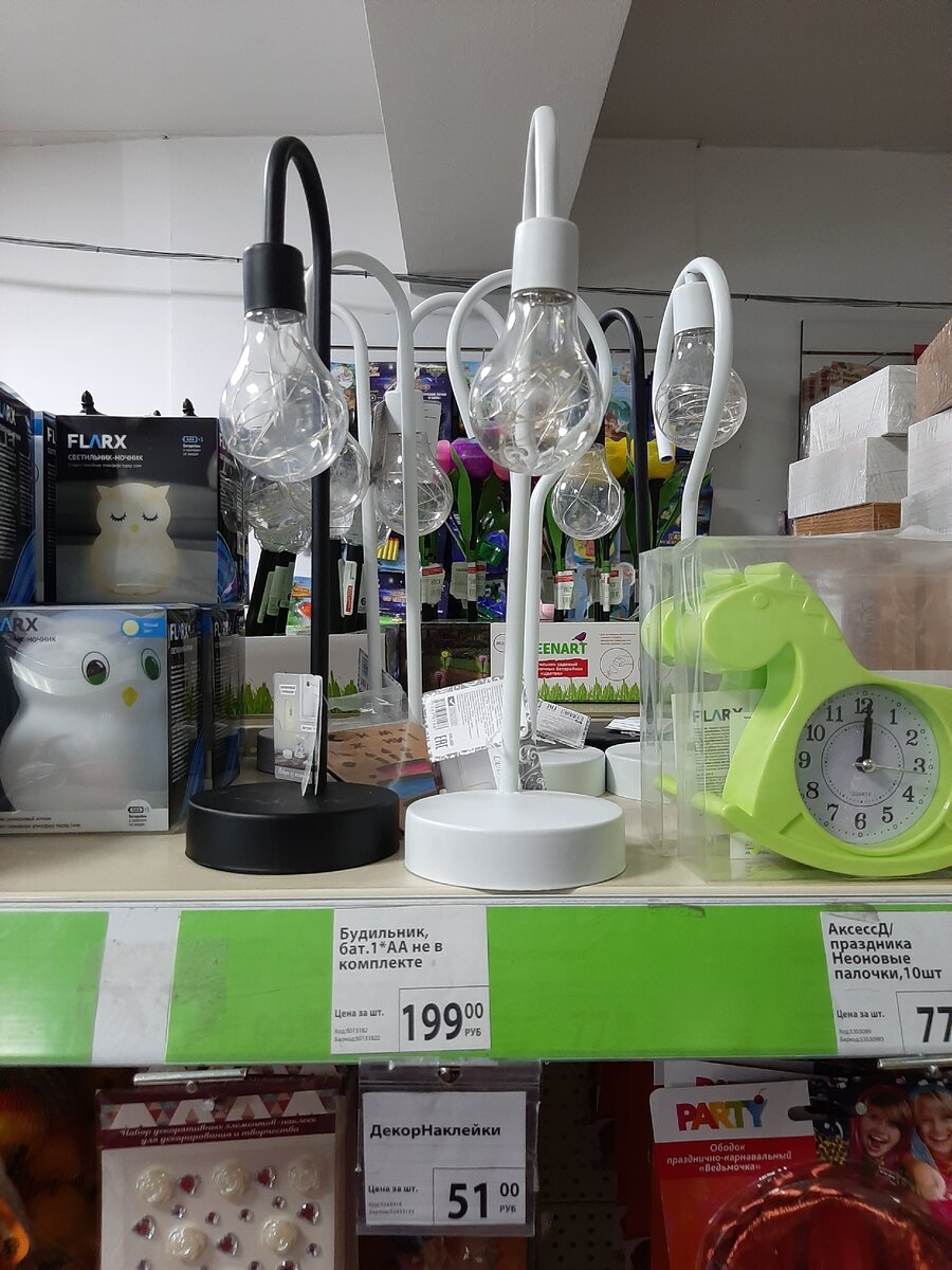 Для тех же, кому в данный момент светильник не требуется, но нужны часы в детскую - в Фикс-Прайсе представлен будильник в виде зелёной лошадки-качалки за 149 рублей)
