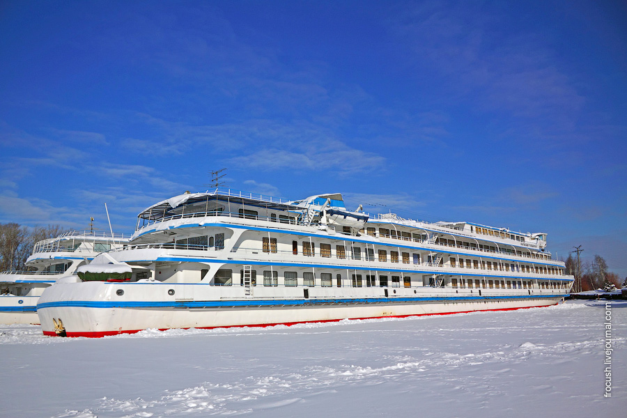 19 февраля 2011 года. Хлебниково. Теплоход «Василий Суриков» во время зимнего отстоя.