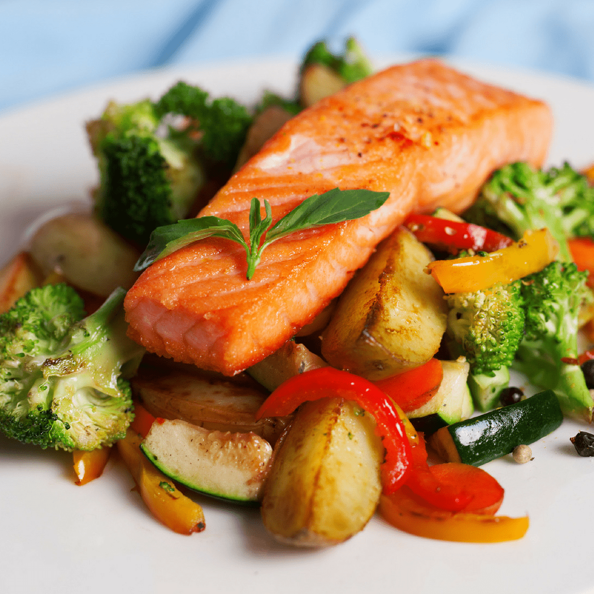 На основное блюдо будет радужная форель с овощами!