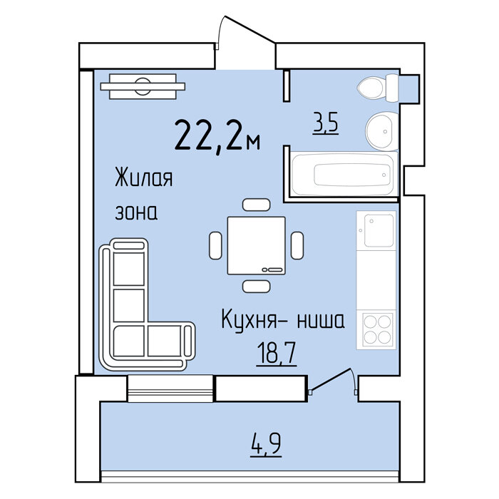 отдельное собственное жилье в этом варианте доступно многим: молодоженам, пенсионерам, студентам. Цена студии на 20-30% ниже, чем однокомнатной квартиры за счет отсутствия части конструкции – лишних стен и дверей.