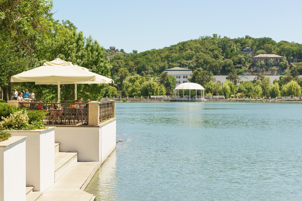 Здесь вы можете взять на прокат лодку или катамаран и самостоятельно освоить просторы уникального озера покружив вокруг фонтанов, находящихся в небольшом удалении от берега.