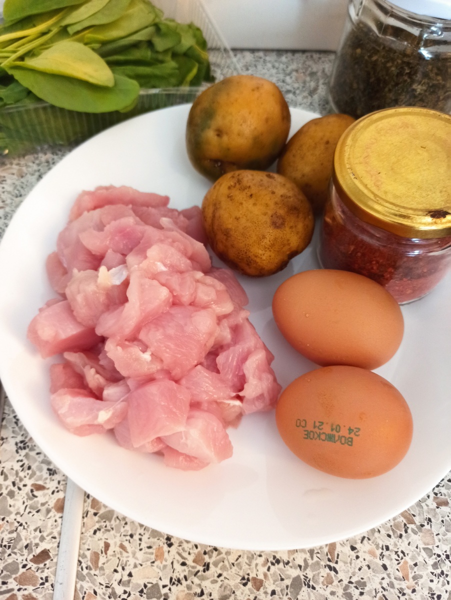 Отправляем мясо вариться в кастрюлю со специями и лавровым листом до готовности, затем добавляем мелконарезанную картошку.
