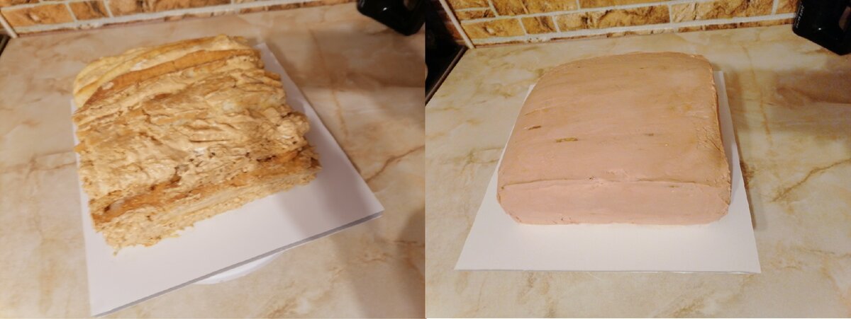 Перед покрытием торт нужно охладить в морозильной камере, тогда ганаш хорошо покрывает торт и застывает на нём, образуя нужную форму.