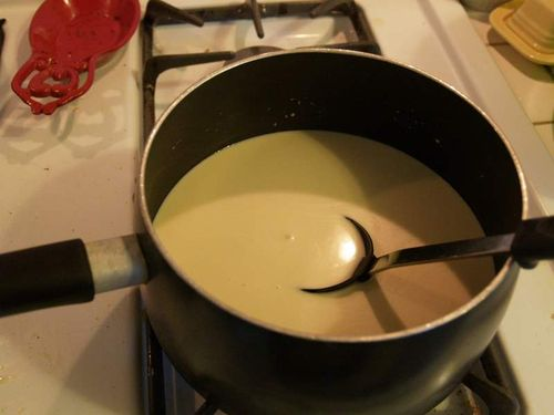 1) В кастрюле средней плотности смешайте: 3/4 стакана дульсе де лече, сливки, молоко и сахар.