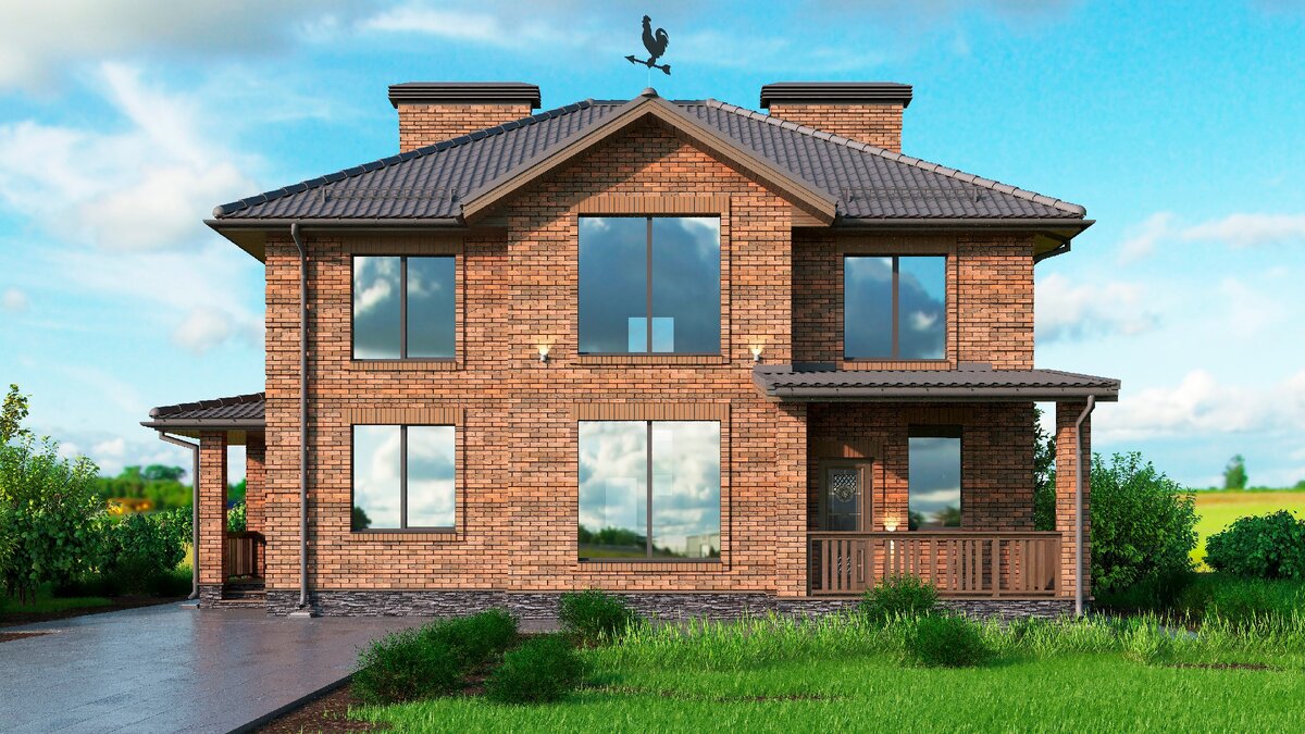 Вокруг оконных и дверных проемов выполнена кирпичная окантовка тем же облицовочным керамическим кирпичом. Также по углам нанесены русты высотой в 4 кирпича. Эти архитектурные детали сильно в глаза не бросаются, но придают уютности и душевности дому.