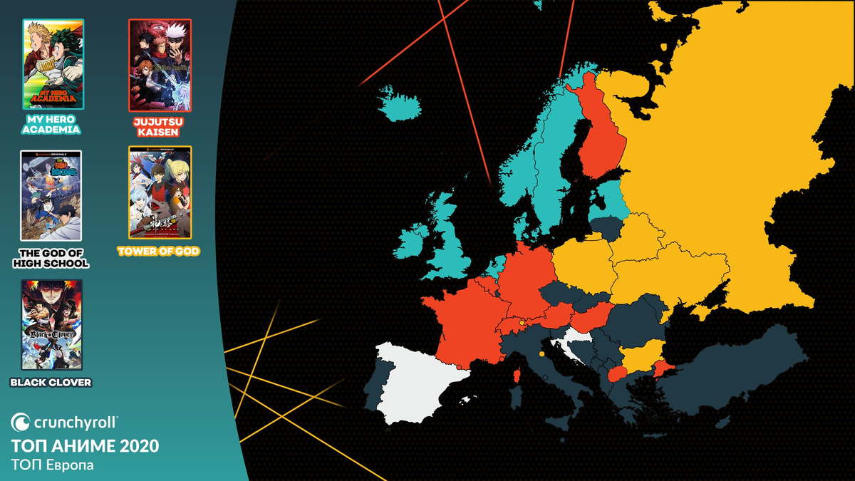Мы покопались в базах данных Crunchyroll, чтобы найти самое популярное аниме 2020 года среди наших премиум-пользователей, чтобы узнать, что полюбилось зрителям из разных стран в прошлом году.