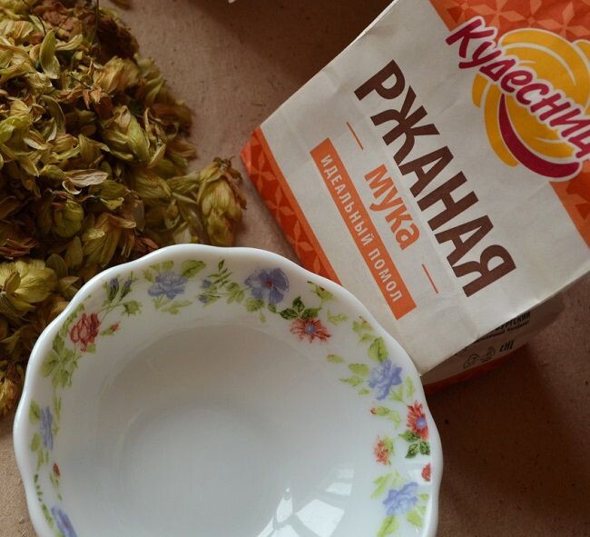 В качестве целебных добавок я выбрала в этот раз соплодия хмеля собственной заготовки