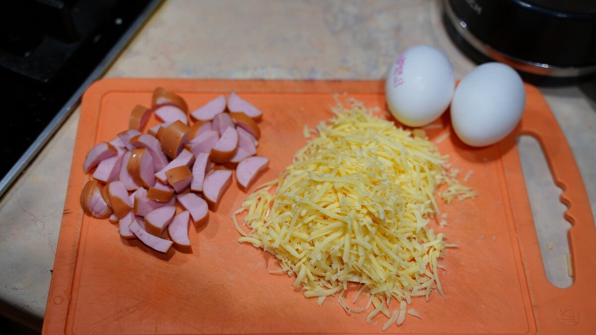 Утром я трачу на приготовление омлета всего 5 минут, быстрый, вкусный и любимый завтрак мужа)Нам понадобится:-куриное яйцо 2 шт-1 сосиска(колбаса, ветчина, на ваше усмотрение)-сыр-соль и перец по вкусуОмлет я делаю на сливочном масле, так он получается еще вкуснее. Пока сковорода нагревается, нарезаем сосиски и натираем сыр на мелкой терке.