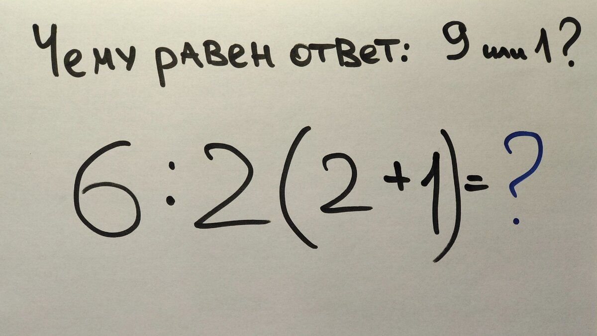 Калькуляторы на телефоне и на инженерном калькуляторе выдают в ответе 9. И это запутывает ещё больше. Понятно, что калькулятор и смартфон - это всего лишь машина, в которую вложили какой-то алгоритм, вопрос в том, правильный это алгоритм или нет? Кстати, в интернете я видео видео с калькулятором, который вообще отказывался такое считать и "говорил", что запись некорректна. Я, кстати, тоже придерживаюсь такого мнения. Математика не терпит вот таких двусмысленностей. Нормальный составитель задачи не допустит этого и поставит лишний знак умножения или дополнительные скобки, чтобы прояснить ситуацию.