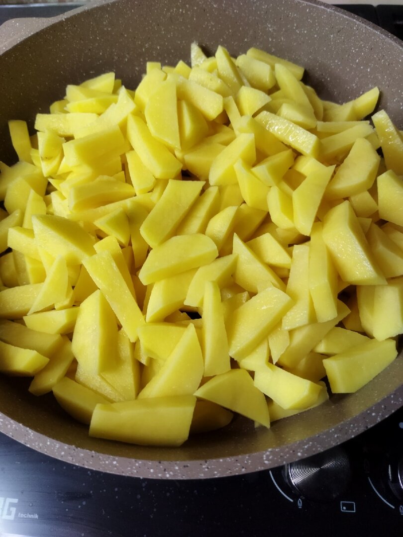Нарезаем картофель средними брусочками, чтобы не развалился.