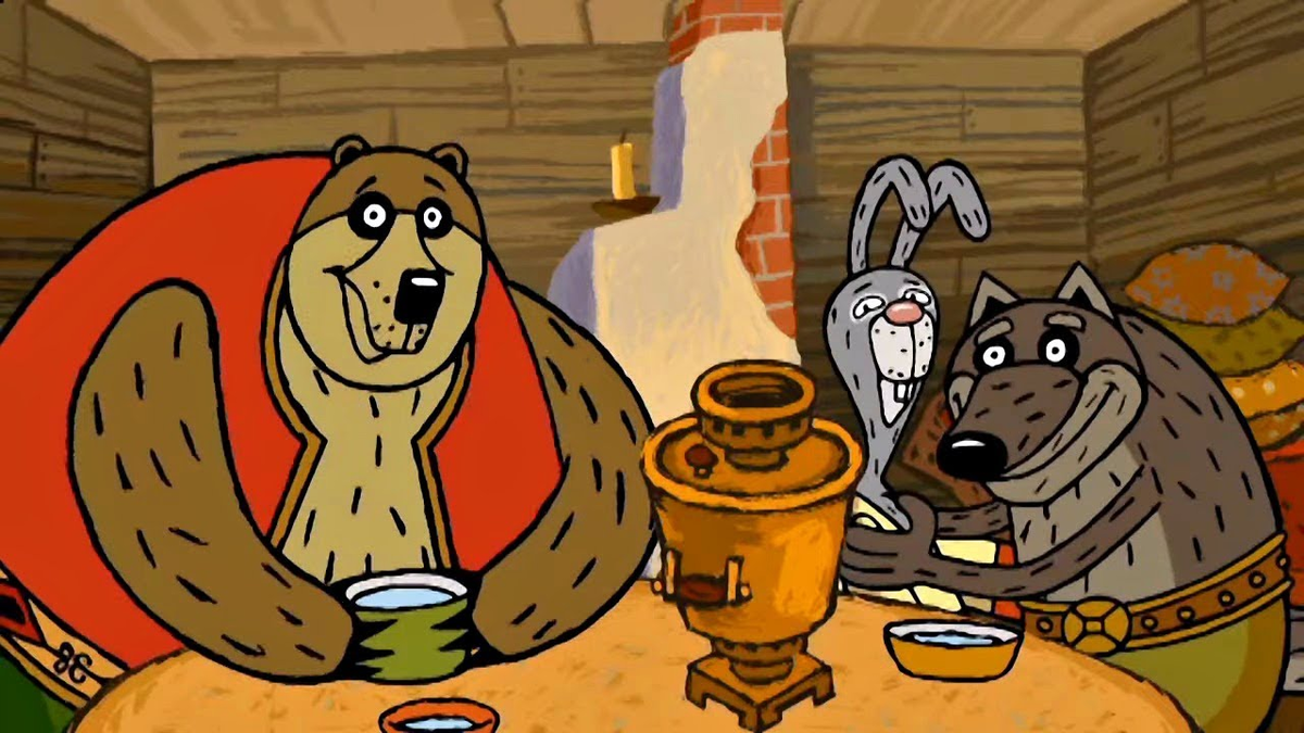 Однажды сидят они в своей избе, чай пьют. Волк говорит: