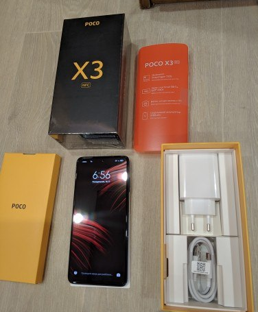 В комплектацию входит: блок и провод для зарядки, прозрачный силиконовый чехол, и штучка для открытия слота сим-карт.