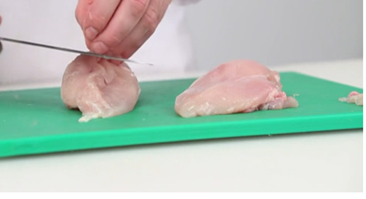 Куриное филе нарезаю ломтиками 3 см, солю и перчу.
