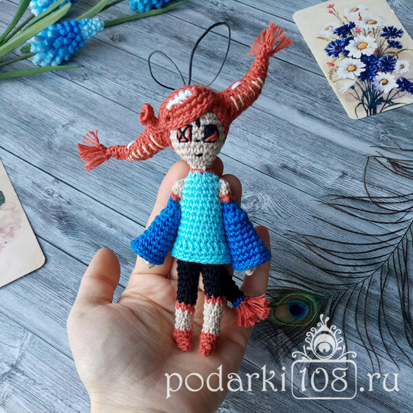 Эта новоиспеченная кукла Катрин была связана по рисунку девочки. Она любитель рисовать фантазийных кукол. И одну из них попросила у Дед мороза на Новый год. Вот тут мама озадачилась, т.к. таких кукол в магазине не купить. Да и девочка хочет носить ее в виде брелка на рюкзаке, а значит она должна быть маленькая. Что делать? Где такую взять? Не понятно… Но вязание – это волшебство! Связать (теоретически) можно все что угодно. Любого размера и формы! Я связала по рисунку. И расскажу, как это можно сделать. Если вы захотите научиться создавать свои собственные схемы игрушек. Что для этого нужно? Самое главное это иметь опыт. Для начала вам стоит повязать по готовым мастер-классам, чтобы понять как вывязываются различные формы. Опыт приходит от практики, хотите вы этого или нет, он придет! Наконец, вы можете связать любую форму, какая вам нужна. КАК ЖЕ СВЯЗАТЬ ПО ФОТО? Для начала нужно сделать рисунок в натуральную величину. Нужна кукла 20 см, значит рисуем ее четко такого размера