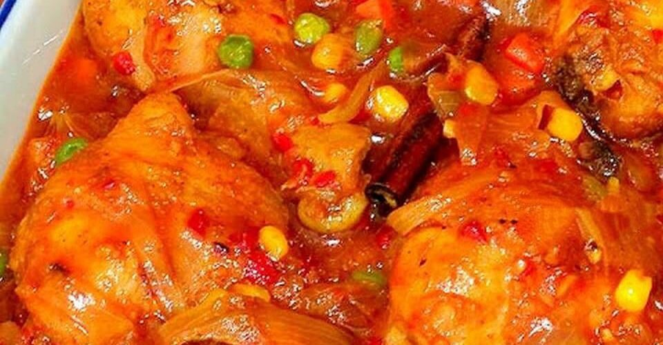 Этот малайский пряный цыпленок с помидорами - классическое малайское блюдо, в котором курица обжаривается и тушится в густом остром и сладком соусе одновременно.