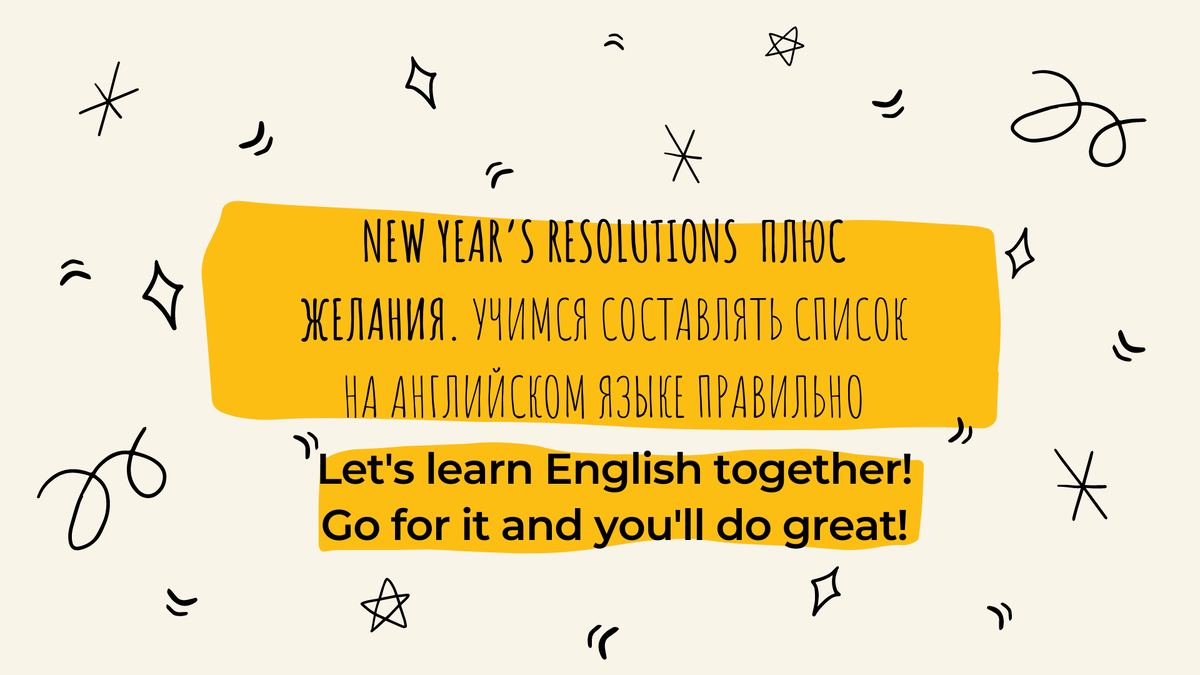 Ребят, я очень хочу, чтобы Вы составили свой список New Year’s resolutions и желаний, поэтому пишите в комментариях свои предложения с целями и желаниями, и мы их обсудим в грамматическом и лексическом ключе. Я обязательно отвечу на все комментарии и помогу Вам разобраться в тонкостях и нюансах языка.
