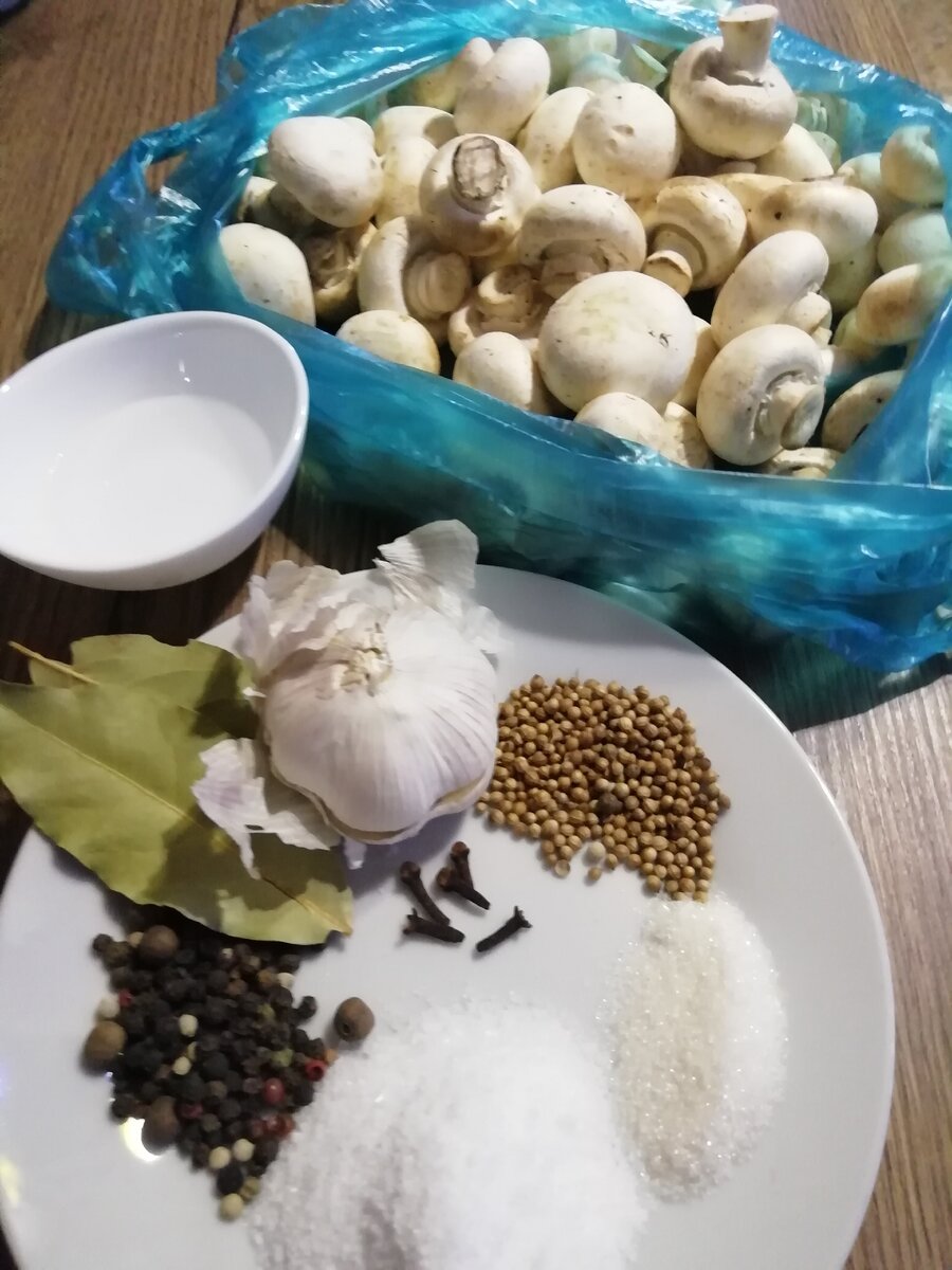 Ждём когда грибы закипят. Затем добавляем уксус и сразу выключаем огонь.