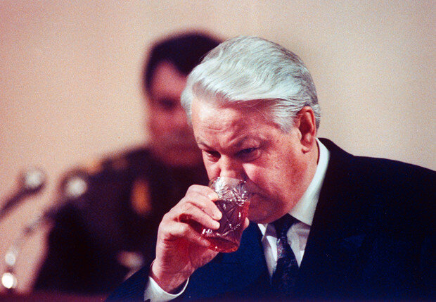 В годы президентства Ельцин пил крепче всего. "Доходило до 6 бутылок водки на брата, то есть по 3 литра", - заявил в одном из интервью Коржаков.