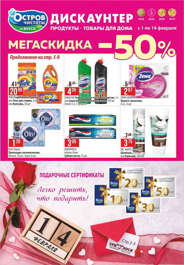 Все товары можно приобрести в наших дискаунтерах или интернет-магазине «Остров чистоты и вкуса» c бесплатной доставкой при заказе от 15 рублей. На неакционные товары действует дополнительная скидка до 18%.