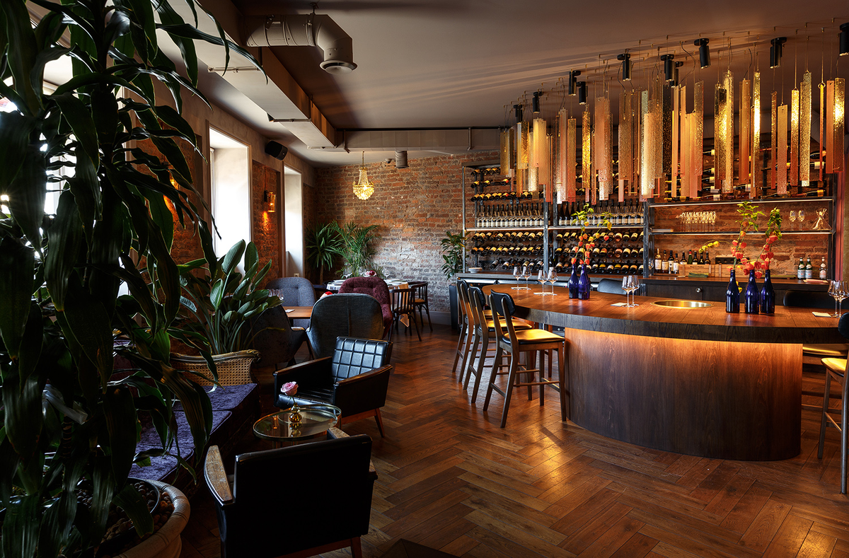 Дизайном пространства занималась Ксения Смирнова, человек в питерской тусовке по-своему уникальный: несколько лет назад она сделала фрески в самом закрытом заведении Петербурга, Tre Bicchieri, а когда его владельцы решили открыть винный бар Big Wine Freaks, то оформила и его. Ксения вручную расписывает плитку, сантиметр за сантиметром реставрирует историческую кирпичную кладку и каким-то чутьем выстраивает детали — настолько все выверено и точно. Смирнова даже из цокольного этажа на Фонтанке сделала невозможное — труевую атмосферу модной Италии, где тебе и до амальфийских апельсинов, и до лучших равиоли — рукой подать.