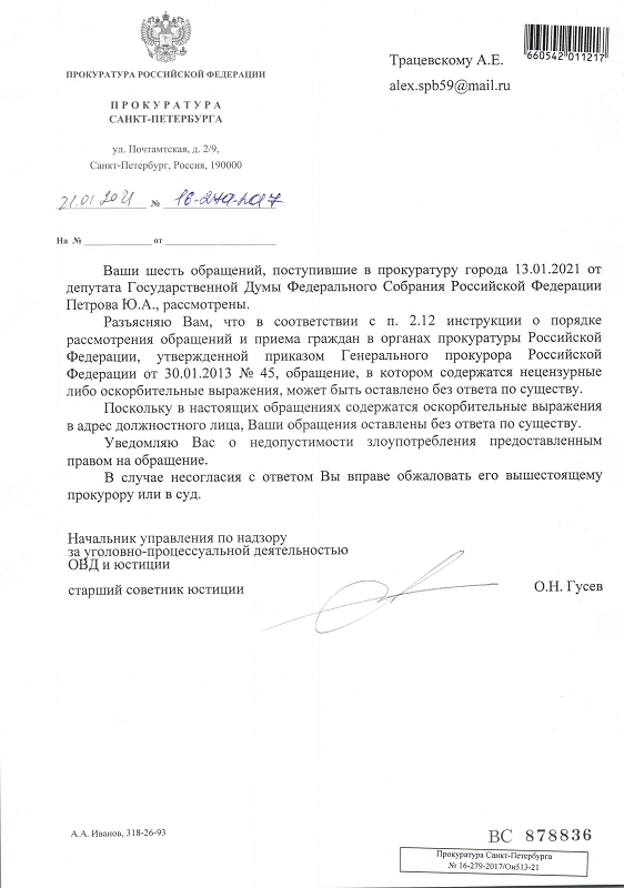 ТАК ПРОКУРАТУРА СПб ВРЕТ 21 ГОД! СИСТЕМА: ВРЕТ МВД, ВРЕТ ПРОКУРАТУРА!!!