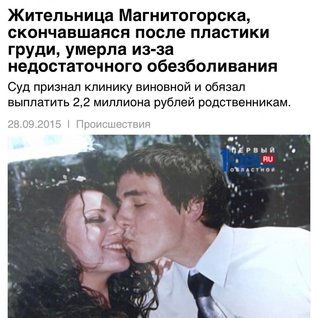 В Магнитогорске рассматривалось дело о смерти молодой женщины в следствие неудачной пластической операции.⠀