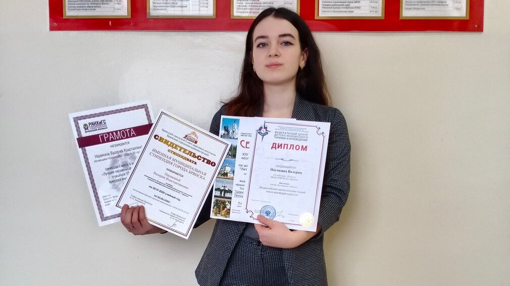 За многочисленные заслуги Валерия Наумкина в прошлом учебном году была удостоена муниципальной стипендии. У одиннадцатиклассницы немало высоких наград.