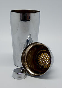для первой поры пойдёт обычный «европейский» шейкер. В нем уже встроена сетка для фильтрации вашего коктейля от кусков льда и прочего неприятного, что туда может попасть после шейка. Состоит он из трёх частей:
