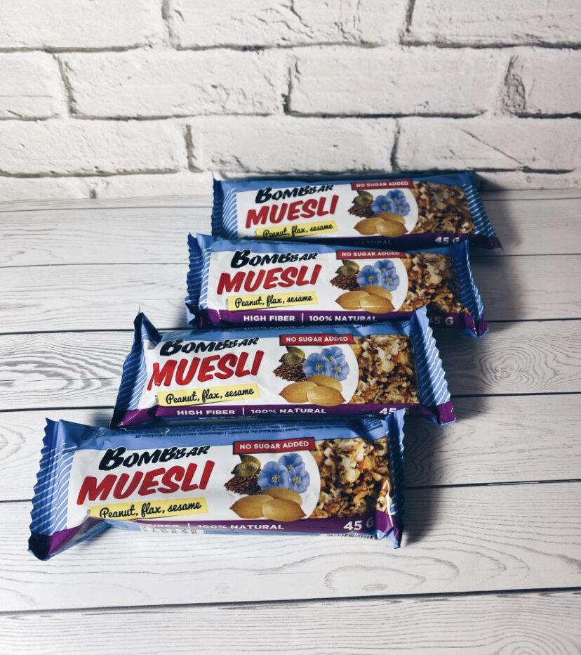 - Тип продукта: Мультизлаковые батончики Bombbar Арахис / natural bar MUESLI Peanut & Flax & Sesame
