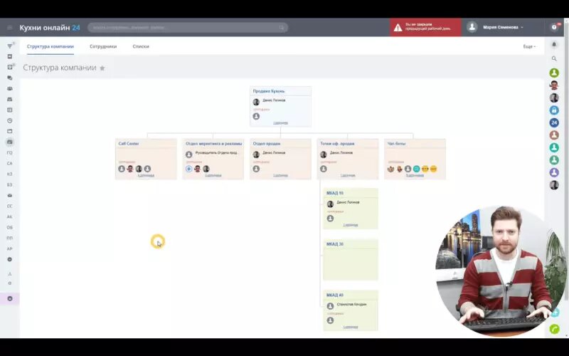 - Кликнуть по аватарке сотрудника на странице структуры компании.