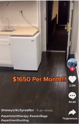 Риэлтор из Нью-Йорка показал самую ужасную, по его мнению, квартиру. Расположенная на Манхэттене студия размером не больше 10 м2 сдается по цене 1650 долларов в месяц. Это около 125 тысяч в переводе на российский рубль.