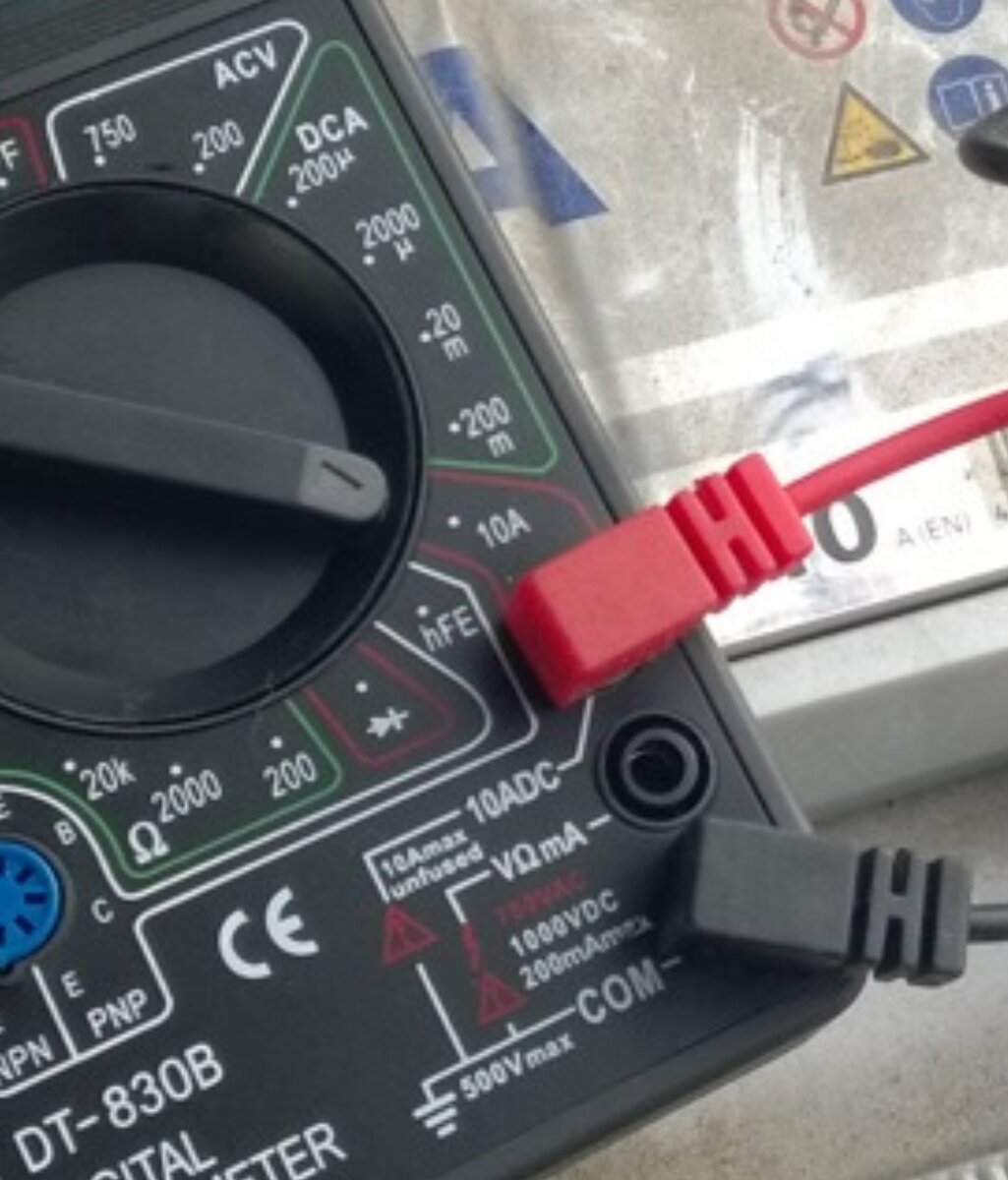 - Красный провод вставляете в 10А/амперное гнездо мультимметра.