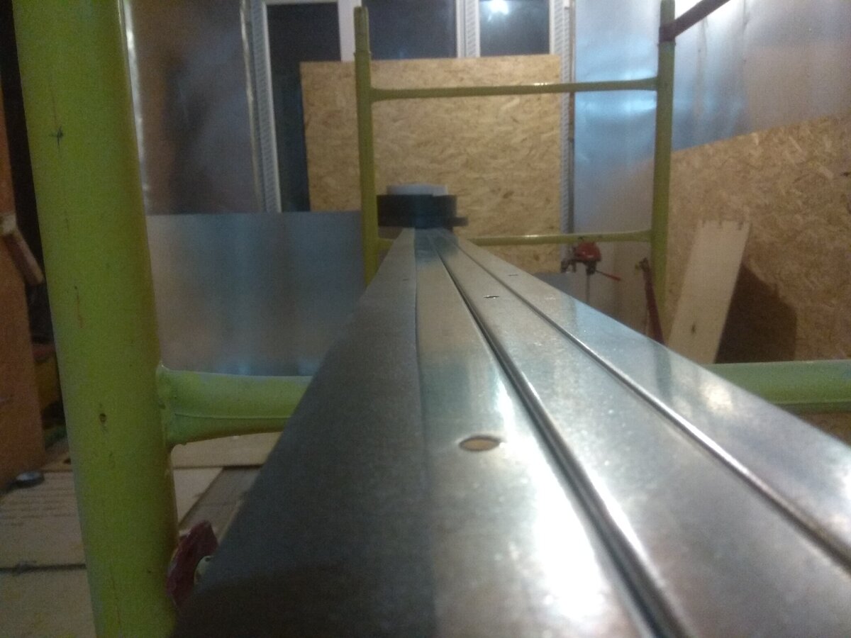 Ву-а-ля, профиля готовы!! Насчитываем количество и прикручиваем к потолку. У меня ширина данного потолка 3,06 м, длина 5,50 м. В итоге шаг я взял 50 см по ширине и 60 см по длине потолка.