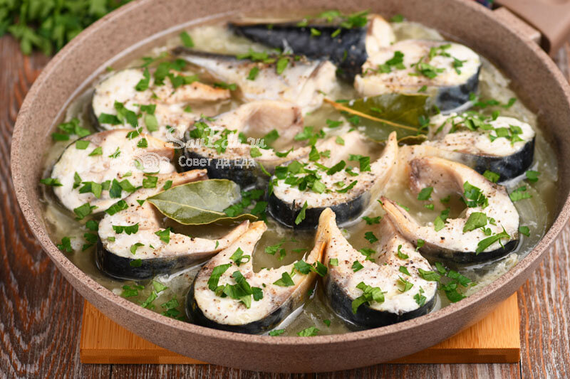 Скумбрию готовлю разными способами, но этот самый любимый. На приготовление рыбы уходит всего 10 минут, а вкус и аромат у нее получаются превосходные. Кроме рыбы еще потребуются репчатый лук, соль и специи. Скумбрия готовится очень просто, подавать ее можно с запеченными овощами, картофельным пюре или рисом.