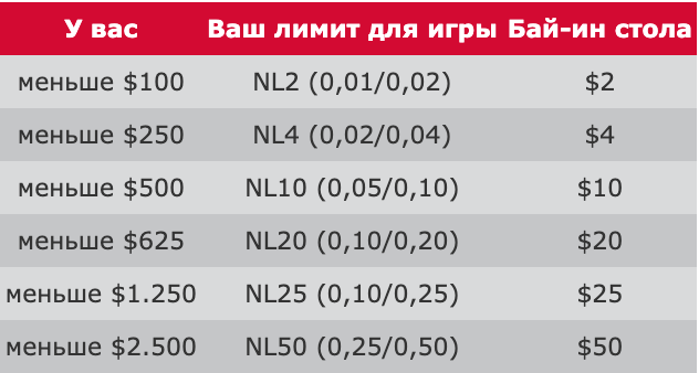 Естественно, вы хотите выигрывать как можно больше при минимальном проигрыше. Для достижения этого необходимо следовать правилу 25 бай-инов. Оно объясняет, каким должен быть ваш банкролл, чтобы подниматься на лимит выше, и когда нужно спускаться на лимит ниже.