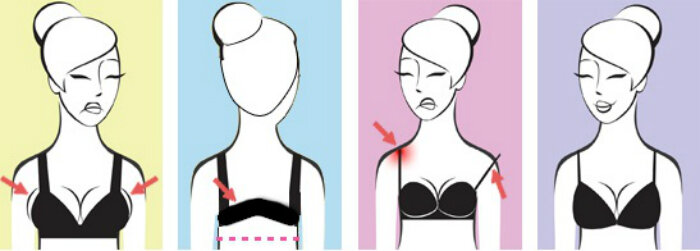 - Если чашечки бюстгальтера Вам малы, то бретельки тоже будут соскальзывать потому, что не смогут должным образом выдержать давление груди.