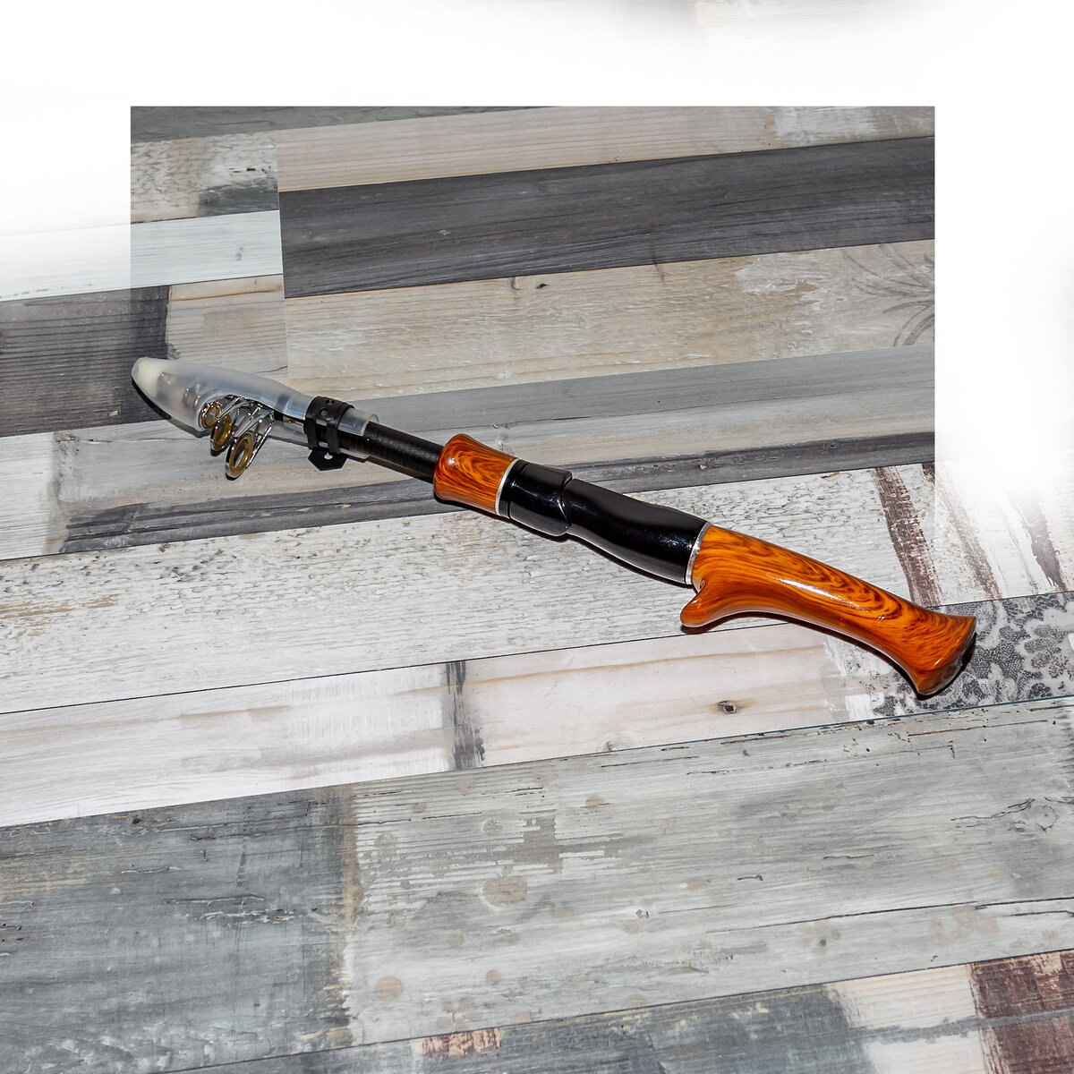 В сборном виде удочка длиной всего 51см. Чтобы удочка не раздвигалась во время транспортировки, есть пластиковый чехол с силиконовым ремешком для дополнительной фиксации.