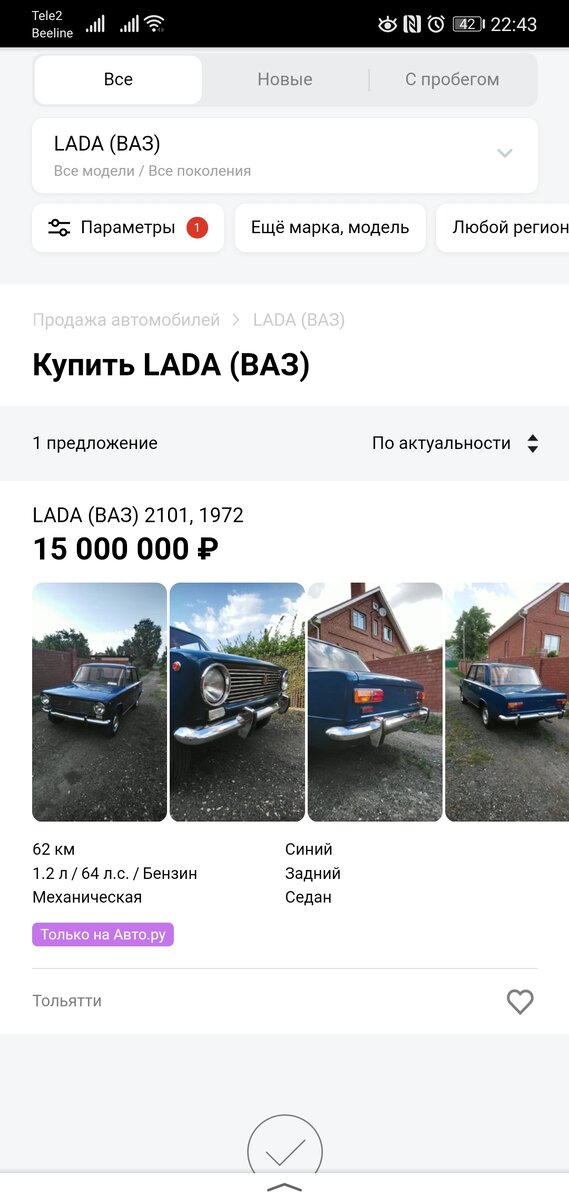Всем привет, сегодня наткнулся на объявление в a to. ru. И что вы думаете что я там нашёл ВАЗ 2101 ЗА 15 Лямов (1972).Вот это объявление.