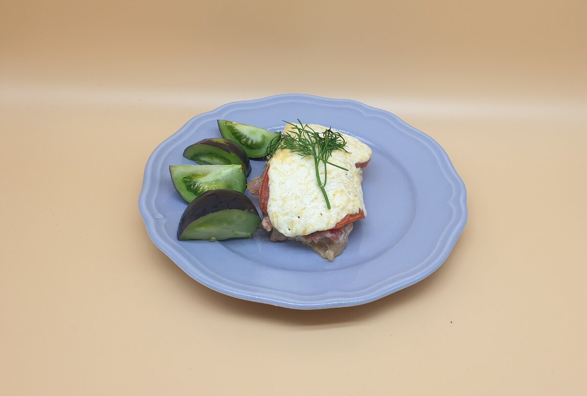 Это блюдо можно приготовить для всей семьи, а можно угостить гостей. Если красиво оформить - не стыдно подать и на праздничный стол. Яркий вкус и сытость всех за столом обеспечены. Расскажу свой рецепт мяса по-французски. Берем хорошие кусочки свинины (если будет говядина, то при запекании следите чтобы она не пересушилась), отбиваем. Я накрываю полиэтиленовым пакетиком чтобы не заляпать всю кухню. Присаливаем, перчим с обеих сторон. Включаем духовку разогреваться и выкладываем мясо на противень, слегка смазанный маслом или покрытый бумагой для запекания. Дальше самый вкусный момент. Я натираю мясо давленным чесноком. Это будет ммм 😍. Ну, а потом действуем так, как позволяет состав ингредиентов в вашем холодильнике. Например, я в этот раз положила сверху на отбивную пластинки нарезанных шампиньонов, томаты, и уже после этого покрыла мясо соусом из тертого сыра и сметаны, можно туда же добавить зелень или украсить ей готовое мясо при подаче. Запекается мясо минут 30 в духовке при темпе