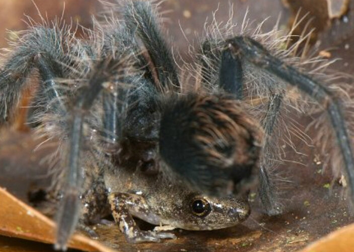 В качестве домашних питомцев тарантулы заводят лягушек. И у этих странных отношений есть свое объяснение: пауки страдают от мелких насекомых, которых привлекает запах падали (а в логове тарантула этот запах бывает часто). И для того чтобы защитить свою еду, паук подселяет к себе лягушку. Несмотря на то, что с этого момента он ограждает своего питомца от других хищников, иногда он может задуматься