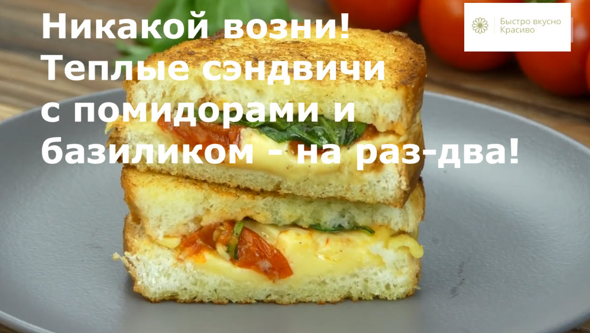 Теплый сэндвич с помидорами и базиликом - на раз-два! Идеальный выбор для сытного, быстрого и вкусного завтрака!